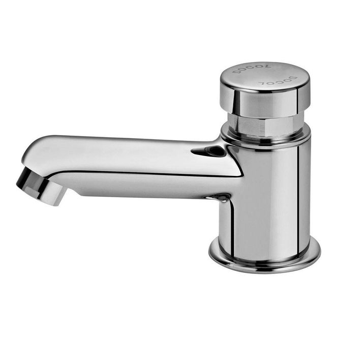 A Torneira para Lavatório de Mesa Pressmatic Compact Cromado da Docol possui arejador, que além de garantir economia de água, evita respingos e proporciona um maior conforto para as mãos.